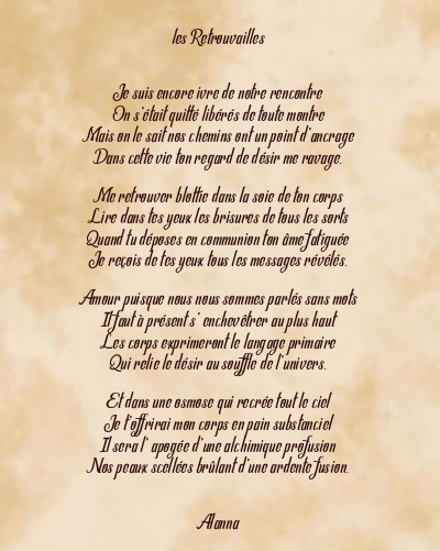 Les Feux de la Passion se lisent là avec Puissance .. L’Ivresse de la rencontre .. les Corps mêlés .. Beau poème d’Amour !!