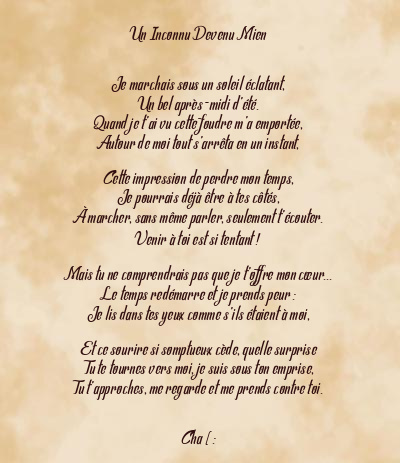 Poème:Un Inconnu Devenu Mien