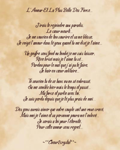 a mon amour qu’on ma si vite araché je t’aimerais de tout mon coeur et a jamais. . .