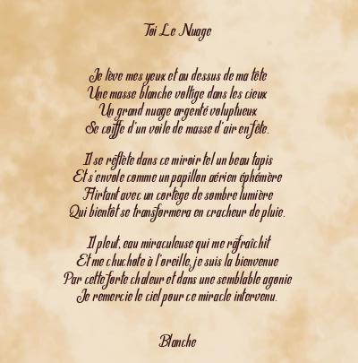 Blanche a publié sur le site 419 écrits. Blanche est membre du site depuis l'année 2021.Lire le profil du poète BlancheSyllabation De L'Écrit