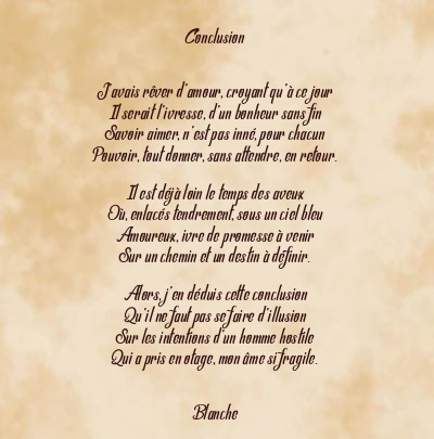 Blanche a publié sur le site 419 écrits. Blanche est membre du site depuis l'année 2021.Lire le profil du poète BlancheSyllabation De L'Écrit