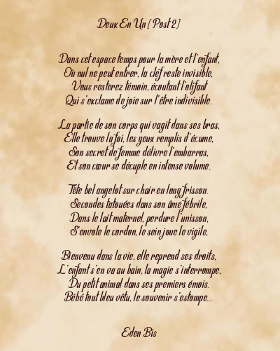 Eden Bis a publié sur le site 18 écrits. Eden Bis est membre du site depuis l'année 2013.Lire le profil du poète Eden BisSyllabation De L'Écrit