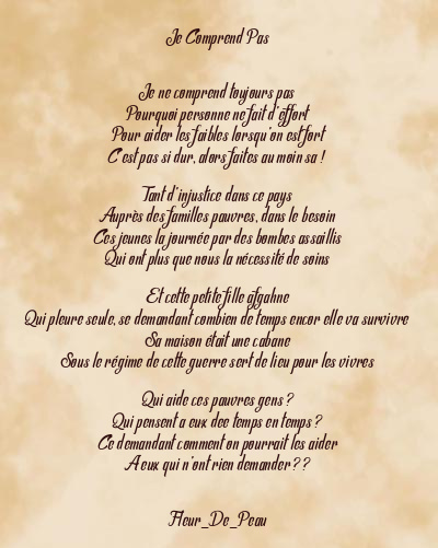 Pour mettre des commentaires vous devez être membre ou poète du site. Un simple inscription suffit pour le devenir.