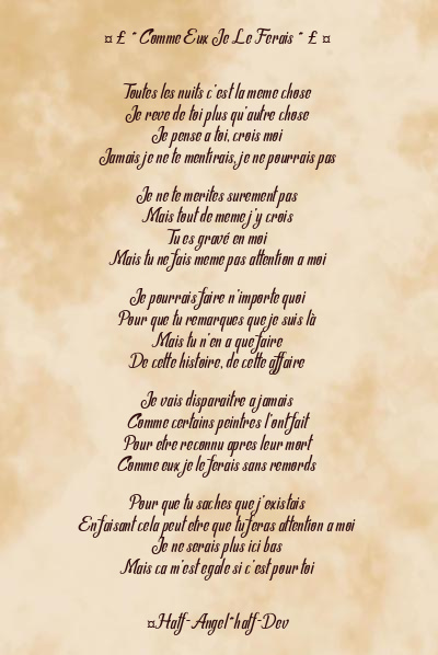 Poème:¤ £ * Comme Eux Je Le Ferais * £ ¤