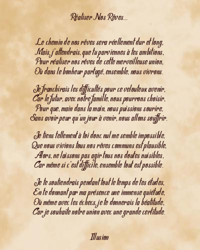 je souhaite que vous puissiez réaliser vos rêves tous les deux