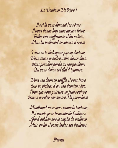 Illusion a publié sur le site 953 écrits. Illusion est membre du site depuis l'année 1994.Lire le profil du poète IllusionSyllabation De L'Écrit