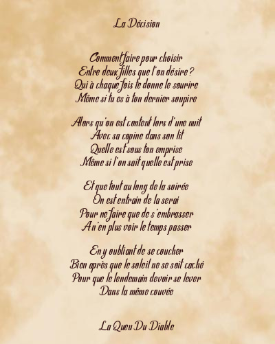La Queu Du Diable a publié sur le site 5 écrits. La Queu Du Diable est membre du site depuis l'année 2005.Lire le profil du poète La Queu Du DiableSyllabation De L'Écrit