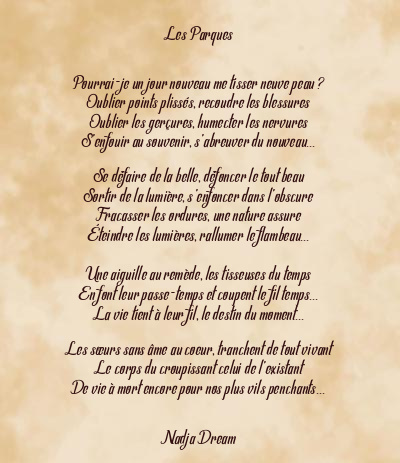 Nadja Dream a publié sur le site 150 écrits. Nadja Dream est membre du site depuis l'année 2017.Lire le profil du poète Nadja DreamSyllabation De L'Écrit