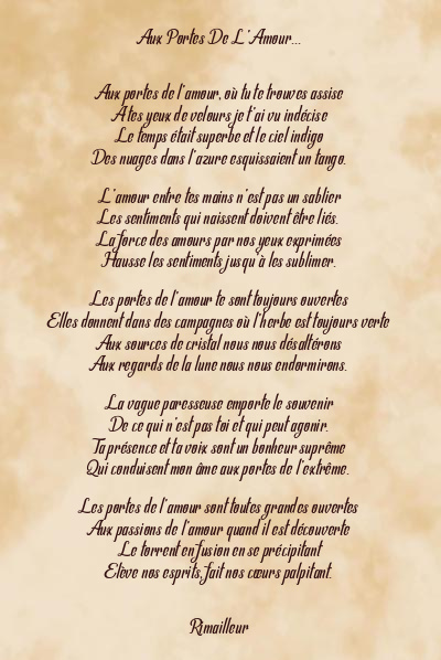 Poème:Aux Portes De L’amour…