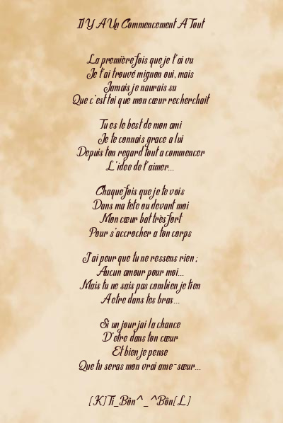 Poème:Il Y A Un Commencement A Tout